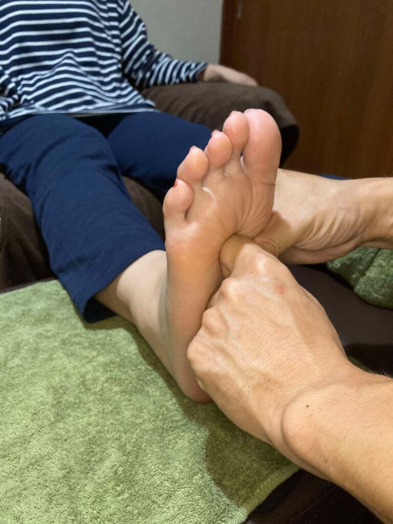 反射区だけでなく、ツボにもアプローチし、丁寧にもんでいきます